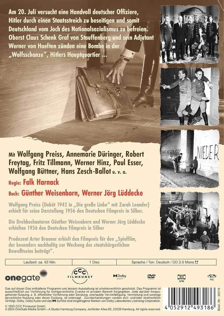 Sorgfältige Verfilmung des Stauffenberg-Attentats von Regisseur und Widerstandskämper Falk Harnack („Das Beil von Wandsbeck“, „Ein Frauenarzt klagt an“, „Unruhige Nacht“) mit Wolfgang Preiss („Hunde, wollt ihr ewig leben?“, „Haie und kleine Fische“, „Der Feuersturm“, „Die Brücke von Arnheim“, „Das Testament des Dr. Mabuse“), Annemarie Düringer („Nachts, wenn der Teufel kam“, „Vor Sonnenuntergang“, „Die Sehnsucht der Veronika Voss“, „Berlin Alexanderplatz“, „Der große Bellheim“), Hans Zesch-Ballot („Der Tiger von Eschnapur“, „Dr. Crippen lebt“, „Nachts auf den Straßen“, Durbridge - „Der Andere“, „Gaslicht“, „Das Mädchen vom Moorhof“), Robert Freitag ("Entscheidung vor Morgengrauen") und Maximillian Schell (Urteil von Nürnberg, Topkapi, Die Akte Odessa, Steiner – Das Eiserne Kreuz, Die Brücke von Arnheim, Das Tagebuch der Anne Frank) in seiner zweiten Kinorolle!