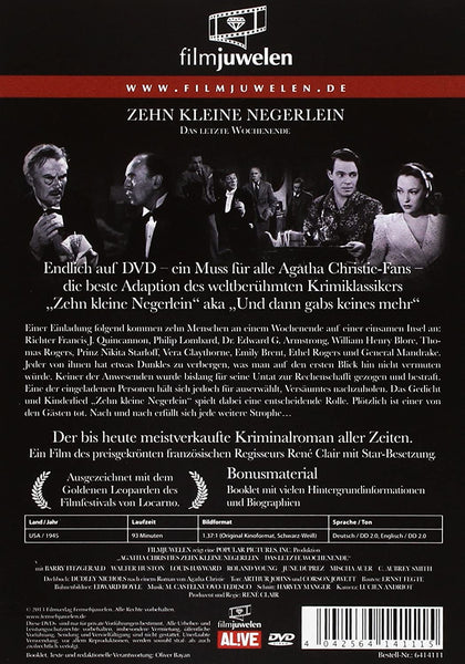 Zehn Personen finden sich zu einem Wochenendebesuch auf einer einsamen Insel ein. So harmlos sie aussehen, hat doch jeder irgendeine heimliche Untat zu verbergen, mit der er bisher ungerechtfertigter Weise dem Arm bürgerlicher Gerichtsbarkeit entronnen ist. Aber einer ist unter ihnen, der sich zum Rächer berufen fühlt, um die verletzte Weltordnung wieder einzurenken. Und langsam, Stück für Stück, fällt ein Negerlein nach dem anderen um... "Zehn kleine Negerlein" heißt der berühmte Kriminalroman von Agatha Christie, der diesem Film zugrunde liegt. Ein Grusel-Thriller, wie er im Buche steht. Bis heute ist es der meistverkaufte Kriminalroman aller Zeiten. Eine harte englische Kriminalstory gepaart mit französischem Charme, in deren Verlauf sich zehn Personen zu einem Wochenendbesuch auf einer einsamen Insel einfinden. Ein Mord nach dem anderen geschieht. Wer ist der Drahtzieher der Zehn, auf dessen Konto die Todesfälle gehen?