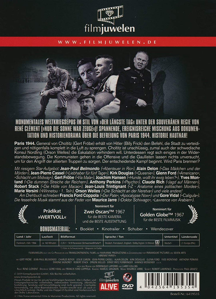 Paris 1944. General von Choltitz erhält von Hitler den Befehl, die Stadt zu verteidigen und nötigenfalls komplett in die Luft zu sprengen. Choltitz ist unschlüssig, zumal auch der schwedische Konsul Nordling die Eskalation verhindern will. Unterdessen regt sich einiges in der Widerstandsbewegung. Die Kommunisten gehen in die Offensive und die Gaullisten lassen nichts unversucht, um für den Angriff der alliierten Truppen zu sorgen. Der entscheidende Kampf beginnt. Wird Paris brennen? "Zum vernehmlichen Lobe René Cléments ist zu sagen, daß er im Vergleich zu anderen Werken mit den Schwierigkeiten filmischer Beschreibung miterlebter Geschichte sehr gut fertig wurde." (Film-Echo/Filmwoche)