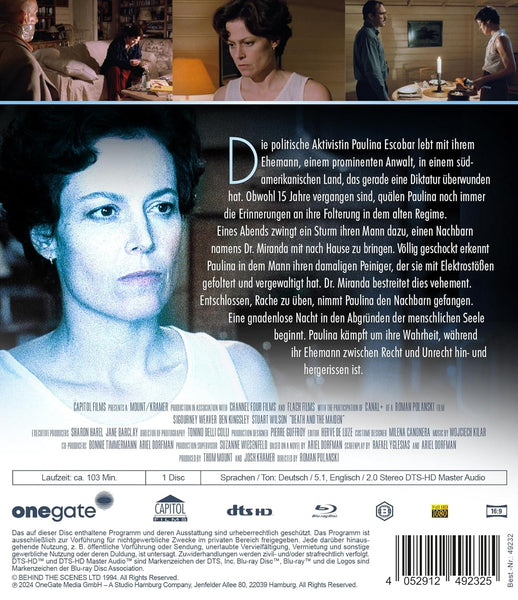Ein intensiver und kammerspielartiger Psychothriller von Roman Polanski (Die neun Pforten, Der Pianist, Der Gott des Gemetzels); prominent besetzt mit Sigourney Weaver (Avatar:Aufbruch nach Pandora, Alien) und Ben Kingsley (Schindlers Liste, Shutter Island).